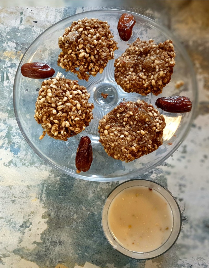 The fat mentioned in the recipe was likely to have been sheep tail fat, which I couldn’t find anywhere at all at short notice, so I used olive oil. I figured that since olives had been cultivated in Mesopotamia from around 5000 years ago it wasn’t outside the realms of possibility that oil might have been used in place of animal fat when needed.