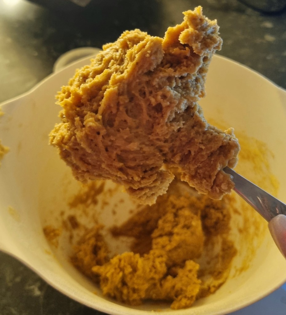 I muddled along as best I could with this hodgepodge of a recipe (the gingerbread one, not the fever dream melon one), and noticed that even though the recipe was called sugar gingerbread, the sugar was vastly outweighed by the ginger. In fact, dry ingredients in general outweighed wet ones so that the mixture was exceptionally thick and claggy, leading me to think I’d converted something incorrectly given that I was supposed to “pour” the mix into the baking tin at the end. Nevertheless, I persisted.