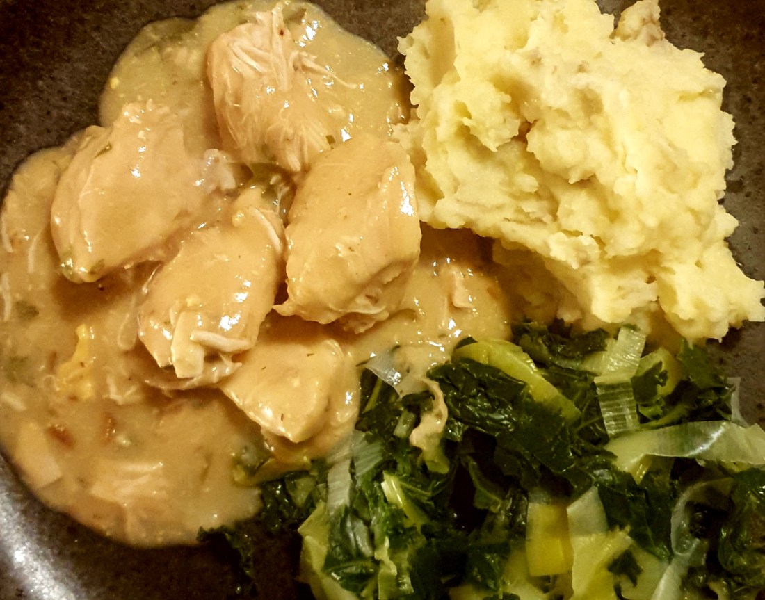 Once the liquid resembled a silky looking white sauce and less like Satan’s bathwater, I added some salt and cinnamon and “served it forth” along with some distinctly un-Tudor mustard mash and greens. It’s a myth that the Tudors added spices to rotting meat to disguise the disgusting taste; spices like cinnamon, which became popular during the reign of Elizabeth I, were so expensive that their presence in recipes indicates that the chef could definitely have afforded good quality meat. It would have been more than it was worth to a royal chef to use up rotting meat for the king or queen, and so as with the dates the cinnamon would have been an exciting way to show off relatively unusual ingredients and wealth.